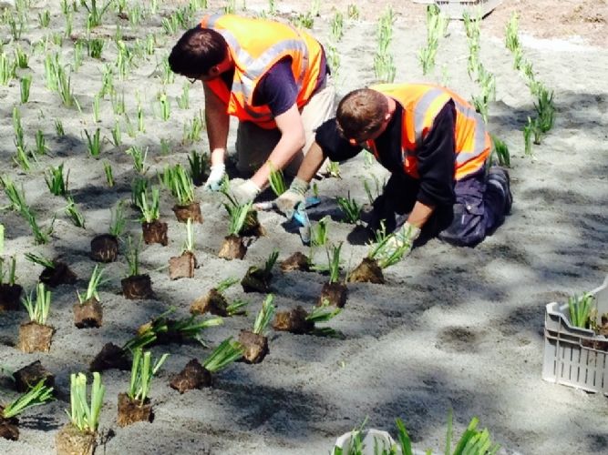 Aanleg ondergrondse regenwaterberging, sedumveld, helofytenveld beplant met gele lis en afgewerkt met olivijn dat CO2 opneemt, voorzien van verharde wandelpaden geschikt voor kinderwagens en rolstoelen. Gemeente Westvoorne stelt als eis dat minimaal 5% van de aanneemsom wordt gebruikt voor social return. Om die reden hebben leerlingen van de Praktijkschool, en mensen met een bijstandsuitkering het plantwerk verzorgd. Tevens verzorgen zij hand- en spandiensten en houden ze de projectlocatie schoon.