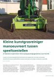Kleine kunstgrasreiniger manouvreert tussen speeltoestellen